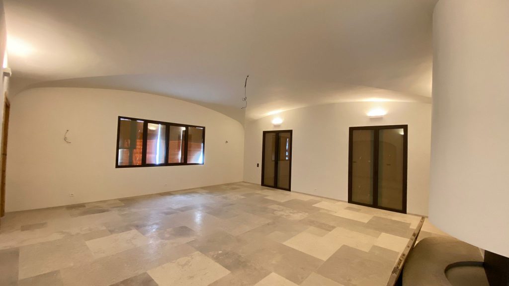 Podemos diferenciar dos ámbitos dentro de la actuación según su uso, claramente diferenciados pero conectados entre sí. El correspondiente a la vivienda, forma la pieza de entrada, así como los dormitorios y servicios ligados a ellos que está estrechamente unido al pabellón principal existente mediante una cubrición ligera. Todo ello con una superficie construida de 679,20 m2.